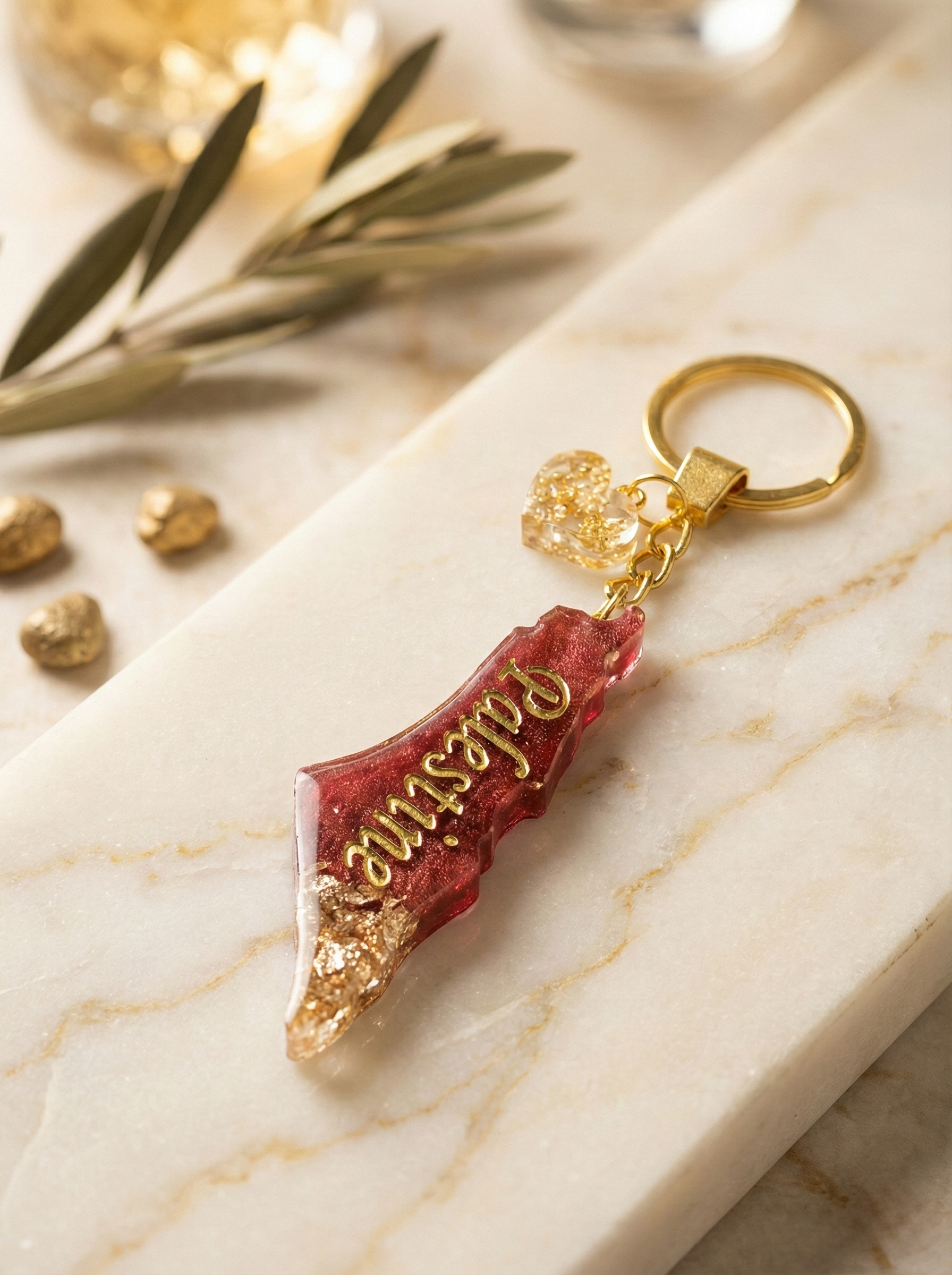 Palestine Resin Keychain – Red & Gold